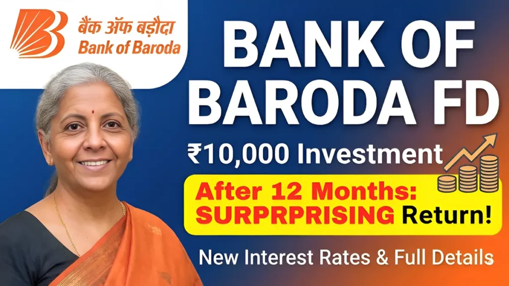 Bank of Baroda FD Scheme: Fixed deposits remain one of the most trusted saving options for Indian investors, especially during times of market uncertainty. Bank of Baroda, a leading public sector bank, has updated its fixed deposit interest rates, drawing fresh attention from small investors. Many savers are keen to know how much a ₹10,000 fixed deposit can grow in just 12 months. This article explains the returns, benefits, and important details in a clear and practical way.